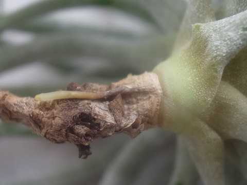 直径1 mmくらいの根が、株の根元から成長はじめた。